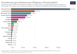 Questi sono i dati divulgati dalle Nazioni unite che riguardano le emissioni di gas serra per kilo di cibo prodotto: